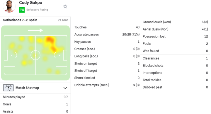 荷兰队的范戴克和加克波也在本周的比赛中有着出色的表现。范戴克在一场2-2战平西班牙的比赛中首发并打满全场,虽然因争执吃到一张黄牌,但依然展现出了稳定的防守能力。而加克波则在同场比赛中进球,但也因犯规吃到一张黄牌。他们都展现出了出色的射门和传球技术,为球队贡献了重要进球。